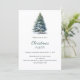 En vinterinbjudan till jul party. En vit bakgrund på framsidan som är dekorerad med en vattenfärgad, handdragen gräs träd med snö. Anpassa och lägg till information om party. Bakåt: blå grönt. Lägg till webbplatsens URL till QR-koden för information om OSA och/eller party.