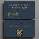 En modern och elegant utformning av affärskortet skapas för gods agent och mäklare. Den här professionellen har en djup marin blå bakgrund med förfinad guld-typografi och ger tillit, sofistikering och framgång. Den byggt QR-koden ger kunderna omedelbar åtkomst till egendom-listor, webbplatser eller kontaktuppgifter. Perfekt för verkliga professioneller i gods som vill visa upp en polerad och tidlös varumärkesidentitet.