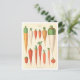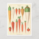 Detta vykort innehåller en botanisk illustration av vintagen från Benary-utsädeskatalogen som visar olika typer av morötter.