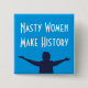 Blå torget Button med en vacker silhuett av Hillary med hennes arm öppen mot orden "Nasty Women Make History." A måste ha för alla kvinnor och särskilt för alla Hillary fläkt.