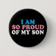 Jag är så stolt över min transgenson. En vacker knapp för överordnat stöd för en mamma av en tranman skriven i blått, rosa och vitt på flagga pride. Ett underbart sätt att visa ditt barn att du alltid kommer att kärlek dem när de har berättat om deras övergång.