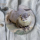 Småklippt smör ljugande på sten. Latin namn Amblonyx cinerea.