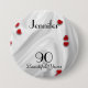 Den här personligen 90:e födelseknapp/ nål dekoreras med en silversbakgrund med små röda hjärtan. Svart text är lätt att anpassa. Du kan enkelt ändra namn, antalet år och datum. Mycket enkelt och elegant! Alla Höger förbehållna © 2014 Alan & Marcia Socolik.