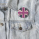 en knäppas/ett emblem med en rosa brittisk flaggadesign för klassiker