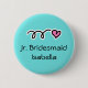 Knäppas den yngre brudtärnan för turkosblått med den gulliga rosa hjärta- och elegantstilsorten. Rolig pinback knäppas för flickor på stilfulla möhippor och utsmyckade bröllop. Besöka vårt lager för mer flott och mer posh giftermåldesigner. Jr. Brudtärnaetikett med beställnings- bakgrundsfärg. Också trevligt för brudtärnor.