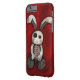 Vit stoppade kaninen med knäppas ögon och lekakortet. Original- konst: Rita, färgade i Photoshop.