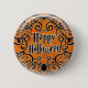 Happy halloween knäppas med spindlar mot en orangebackground.
