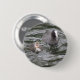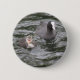 Den här knappen visar ett foto av en Coot och hennes chick som simmar på en flod. Honan är grått med ett vitt plåster på huvudet och röd öga, medan den lilla fluffy chicken är blek grått med vit framsida.