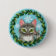 Knappen Cute tabby katt, vinterjul, snö Knapp