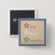 Enkel Chic Stars 4:e juli Button med en faux texturerad papper bakgrund och en trio med röda, vita och blå stjärnor. Knappen snyggt är ett underbart sätt att visa din patriotiska sida! Produkten visar frasen Välsigna dig Amerika, men kan anpassas med din egen text i stället.