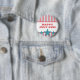 Snyggt och pulserande fet Stars och stripes-knapp med enkla rött, vitt och blått rand och en rad roligt turkosstjärnor. Knappen på trendiget är ett underbart sätt att visa din patriotiska sida den 4 juli! Anpassa den här designen med den text du väljer. Om du vill ändra typsnitt eller färg klickar du på knappen "Anpassa". Den här utformningen passar också för minnesdagen!