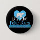 En vacker vit polar i mitten av ett söt blått hjärta ovanför SPARAN POLARNA BÖR i vitt och blått. Den här söta polarnas björnknapp är en söt djurhållare för en tjej som gillar djur.