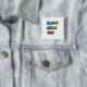 Fyrkantig stift för jacka eller kläder. Färgstarkt regnbåge färg "lycklig är jag"