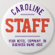 Personalbricka för ett hotell. Lägg till namn i personalmedlemmen för att skapa ett personligt företagskort för dina anställda till bäran när de är med gäster. Knappbricka för Underbar gästfrihet.