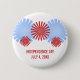 Roligt och funky Retro Fireworks-knapp med fet och unik fyrverkerigrafik i rött och ljusblått. Knappen coola i funky är ett underbart sätt att visa din patriotiska sida var du än är! Anpassa med namn eller annan text.