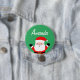 Knappen Stor Santa tecknad namn för jul party hemma eller på kontoret. Utformningen av Cute teckning med rött näsa. Skripttypografisk mall för namn. Personlig namn badge-knappar för Julfest av företag. Anpassningsbar dekoration för företaget X-mas firande. Lämpliga för barn och vuxnor.