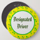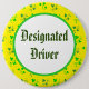 En knapp som läser "Utsedd förare" i blackletter, på en mönster av schampor på gultens bakgrund.