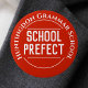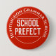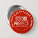 En bricka för en skolprefekt. Ändra ordalydelsen till dina detaljer. Prefekt bricka. Knappbricka för officiell. Vit text på röd bakgrund.
