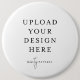 Anpassa knappnålskonstruktionen i Mallett. När du är klar med redigeringen hämtar du filen i JPG-format (glöm inte att aktivera utfallsalternativet). Ladda upp designen här genom att klicka på den blå "Anpassa"-knappen.