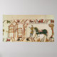 Fransk School's The knights lämnar Hastings and march against Harold (c.1022-66)-detalj från Bayeux Tapestry, före 1082 (wool embroidery on linen) på Musee de la Tapisserie, Bayeux, Frankrike. Här lämnar knivarna Hastings och marscher mot Harold (c.1022-66) detaljer från Bayeux-teatern före 1082 (ullbroderier på linne) skapades runt 1100-talet.