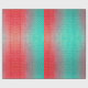 The vibrant knitted pattern displays a bold gradient from vermillion red to aqua blue, highlighting the intricate stitches