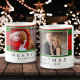 Grönt Red-julfamiljen Photo Collage Coffee Mugg. Juldagen mugg i helgdag och grönt stickande ser ut med en text God jul. Lägg till 2 av dina favoritfoton. Anpassa till din familj namn och år. Gör en unik julklapp och en söt keepé för din familj.