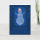 Cute-garnet snögubbe med stickande arm, med en stickad vinterhatt på denna "handgjord med kärlek" eller "handgjord av" julkort för sticktautomater som lägger upp din lista med handgjorda stickade hantverksskor, personlig med din egen text och namn på insidan plus ditt val av färg-system.