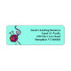 Kitterar temaetiketterna i ljusa turkosa blå med tryckt svart text som är justerad mot högerna. En bild av en boll av garn med stickande nål, som poseras genom dekoraten i kant. Välj en storlek etikett till användan för leverans eller adress för affärsverksamhet.