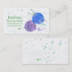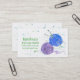 Ett affärskort av roligt som dekorerats med bollar av garn i blå och lila med stickande nål och med en spatterbakgrund som är målad i vattenfärg. Ett glatt affärskort för en knitter som du kan anpassa efter dina behov!