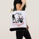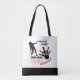 Fun tote for taking personal items to the bowling alley! Same design on both sides depicts a woman bowler and a bowling ball and pins with bold font that reads "When in doubt, knock 'em all down".