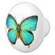 Är botanisk konst för ursnygg vintage av en turkosblåttMorpho fjäril på denna knopp. Image är det förföll offentliga området tar copyrightt på tack vare.