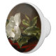 Är botanisk konst för ursnygg vintage vid Heade av en Magnoliablomma och löv på röd sammet på denna knopp. Image är det förföll offentliga området tar copyrightt på tack vare.