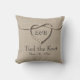 Ett rep som är bundet i ett hjärta, och det nyfödda initialer dekorerar denna kudde på en illustrerad bakgrund som är av burlap/ linen, skapar perfekten för bord eller dekoration i rustik, land eller lada bröllop. Om du behöver ytterligare samordningsposter för bröllop kan du kontakta oss på prettyfancyinvites@gmail.com med din begäran