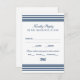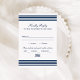 Modern och diskettenhet nautisk bröllop OSA-/svarskortsdesign har en dubbla-lina och vågrät rand. Innehåller alternativ för middagsplats för gäster som kan vara personliger. Systemet med marinblått och vitt färg.