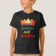 Barn t-shirt med ord "Know My Worth" i Afrikas färg, med ett gyllene krona överst. Baksidan har ett guld-dollartecken.
