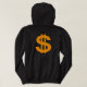 Hoodie med ord "Know My Worth" i Afrikas färg, med en gyllene krona överst. Baksidan har ett gyllene dollartecken.