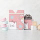 knubbig katter i pastellblått, vitt och rosa presentpapper