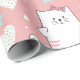 Det här fina mönster har knubbig katter i mjuka pastellnyanser, inklusive vit, blå och orange, som är spridda över en charmerande rosa. Spelande vita hjärtan gör designen mörkare och ger en söt och visuell beröring. De söta kattarna dyker upp i olika attityder, vilket ger en känsla av glädje och lättsinnighet till det allmänna utseendet, perfekt för kattälskare eller dem som njuter av lekfullt, mysigt mönster.