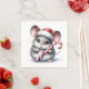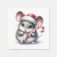 En söt fluffig mus bär en julhatt och håller en stor stripe candy cane
