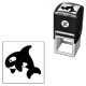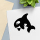 Tecknad knubbig Orca val med ett litet vitt hjärta nära svan. Anpassa med din egen adress.