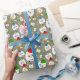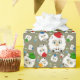 Knubbig, lustigt julfår i tecknad med rött blått eller grönt jultomtar på valfri färg-bakgrund - visas här i en grön taupe färg-bakgrund - skapat av WhimsicalArtwork™