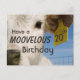 Detta roliga ko födelsedagskort har ett foto av en söt kalv med en numrerad tagg och det anpassningsbara meddelandet "Ha en Moovelous Födelsedag." Fotografering skapad av den prisbelönta fotografen Maria Jeffs.