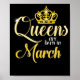 "Queens is Born in March" Cute-födelsedagsgåva till drottningar födda i mars. Innehåller royalet krona och Gult. Den här garantin är perfektens söta och roliga födelsedagspresent för flickor och kvinnor.