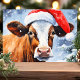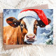 Sprid julstämning med det här roliga och festliga kortet som visar en söt ko som bär en Santa-hatt. Perfekt för djurälskare och de med humor, kommer detta fantasifulla julkort att ge ett leende på ansiktet hos dina vänner och familj.