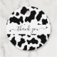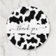 Eleganta vita och svarta ko tryck cowgirl bröllop runda tackkort för bröllopspresenter. Bra tackpresent för bröllopsfest / bröllopsgäster. Också bra för ett västerländskt / sydligt tema bröllop eller möhippa.