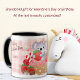Här är en söt Valentine-gåva mugg som din son, dotter eller barnbarn kommer att göra i kärlek! En liten koala har en röd jordgubbe och sitter på en rosa hjärtdekorerad cupaka. Omkring kakan och björnen är hjärtformade ballonger och kanaler. Din anpassningsbar står på båda sidor av bilden. Gör det spelar ingen roll att du vill. Allt placeras på en rosa och vit bakgrund. Cute!