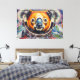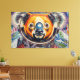 Detta livfulla konstverk av Otis Porritt presenterar en charmig koala, utförd i en slående impasto-stil, iklädd en fullständig rymddräkt. Dess päls sprutar ut i varma nyanser av orange, rött och gult, i kontrast till dess karakteristiska blå näsa och breda, nyfikna ögon som tittar ut från hjälmens visir. Koalans orangefärgade rymddräkt har metalliska blå accenter, medan den kosmiska bakgrunden är en rik mosaik av djupblå och lila nyanser, prickad med lysande, färgglada planeter och en framträdande, texturerad måne. Tjocka, uttrycksfulla penseldrag skapar en dynamisk känsla av rörelse och djup, vilket ger det digitala verket en taktil, måler