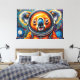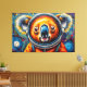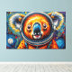 Denna livfulla konstverk av Otis Porritt presenterar en charmig koala, renderad i en slående impasto-stil, iklädd en full astronautdräkt. Dess päls sprutar ut i varma nyanser av orange, rött och gult, som kontrasterar mot dess karakteristiska blå näsa och breda, nyfikna ögon som tittar ut från hjälmens visir. Koalans orange rymddräkt har metalliska blå accenter, medan den kosmiska bakgrunden är en rik gobeläng av djupblå och lila nyanser, prickad med lysande, färgglada planeter och en framträdande, texturerad måne. Tjocka, uttrycksfulla penseldrag skapar en dynamisk känsla av rörelse och djup, vilket ger det digitala verket en taktil, målerisk kvalitet