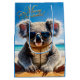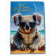 Koala sitta på en sandstrand med solglasögon. "God jul" hälsning på framsidan Detta hårig koala är en av Australiens medborgare. De är lätt igenkännliga genom sin stum, utan tailliga kropp och stora huvud med rund, fluffy öron och stor, spoonformad näsa.