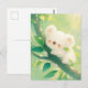 This heartwarming design features an adorable, ultra-fluffy white koala shown resting joyfully in a sun-drenched eucalyptus forest. The koala has a soft, cloud-like texture with a blissfully happy face, closed eyes, and bright pink rosy cheeks that radiate pure contentment. It is captured in a peaceful moment, hugging a dark tree branch that is covered in vibrant green leaves. Beams of bright golden sunlight filter down through the canopy, illuminating the scene with a magical, soft-focus glow and creating a cheerful, serene atmosphere. The overall aesthetic is bright, cozy, and full of sweetness, making it an irresistible choice for fans of Australian wildlife and playful animal art. This cheerful koala postcard is a wonderful choice for sending a warm "thinking of you" note or a sun-drenched greeting to a friend who needs a reason to smile. You might choose to use this artistic card for a jungle-themed birthday invitation or as a sweet way to share news of a summer camping trip with your family. It also makes a precious decorative piece for a child's nursery wall or a bright addition to a creative scrapbooking project as a small token of happiness. This versatile design is also an excellent choice for a housewarming message, a graduation thank you note, or as a heartwarming way to share a message of joy for any situation or event.